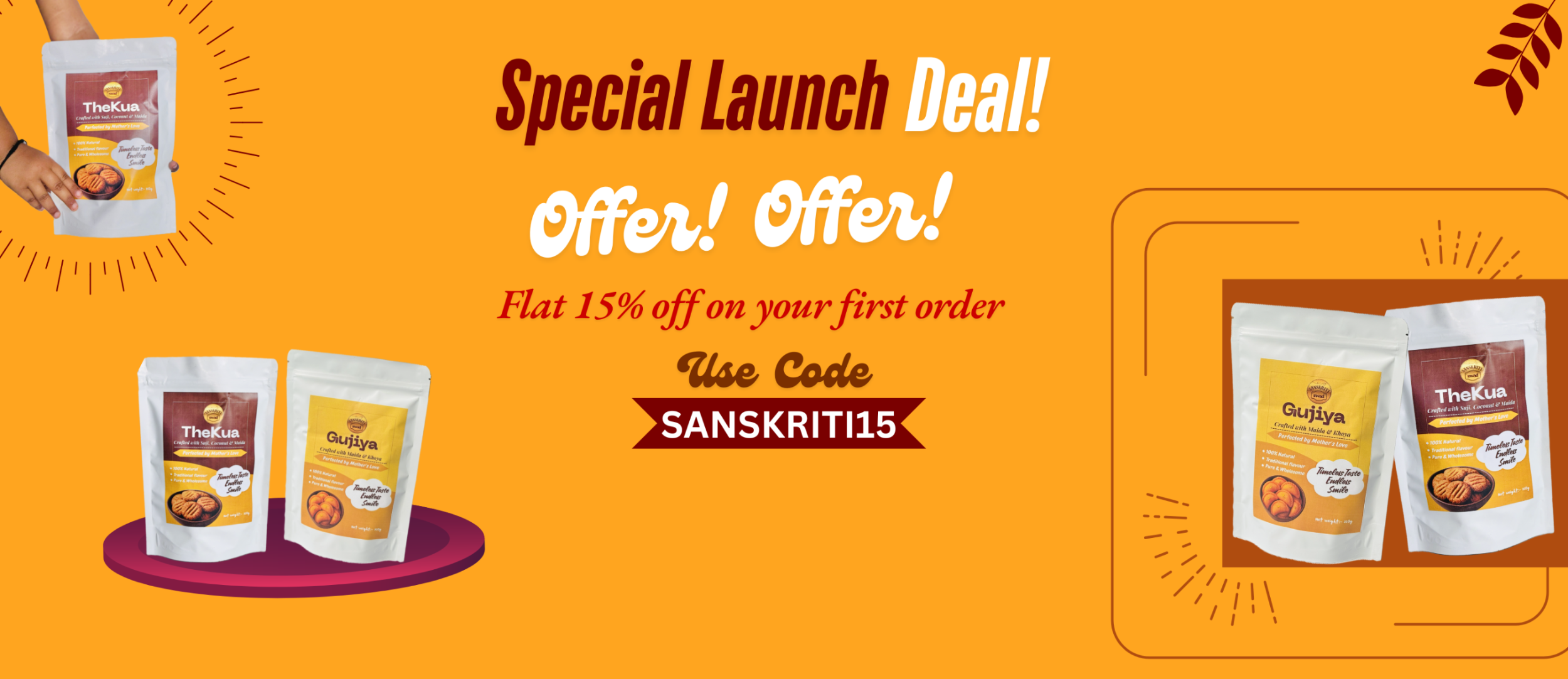 Once upon a time, two best friends, founders of SANSKRITI SWAD noticed something curious: while India is bursting with flavors and traditions, most brands focused on just one snack or one region. They wondered: “Why should the rest of India’s heritage be left unexplored?” And here is the beginning of SANSKRITI SWAD.